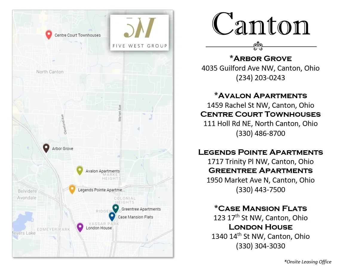 Avalon Apartments offers an ideal location with cozy, renovated units on the north side of Canton. Conveniently situated just minutes from route 62, I-77, and the Pro football Hall of Fame, Avalon offers a premier location within Canton near countless food, grocery, and retail options.